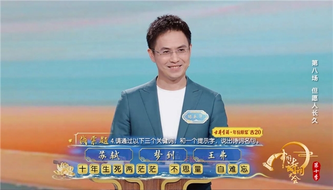 当然,已经走过十年的《中国诗词大会》,更是“但愿人长久”的另一种注解。十年间,我们见过白发老者的深情吟诵,见过少年学子的意气风发,也见过各行各业的普通人,因诗词相聚,因深情相守。“但愿人长久”不是奢望岁月不老、容颜不变,而是期盼牵挂长久、陪伴长久、热爱长久、传承长久;不是逃避离别与遗憾,而是在离别中学会珍惜,在遗憾中学会坚守。